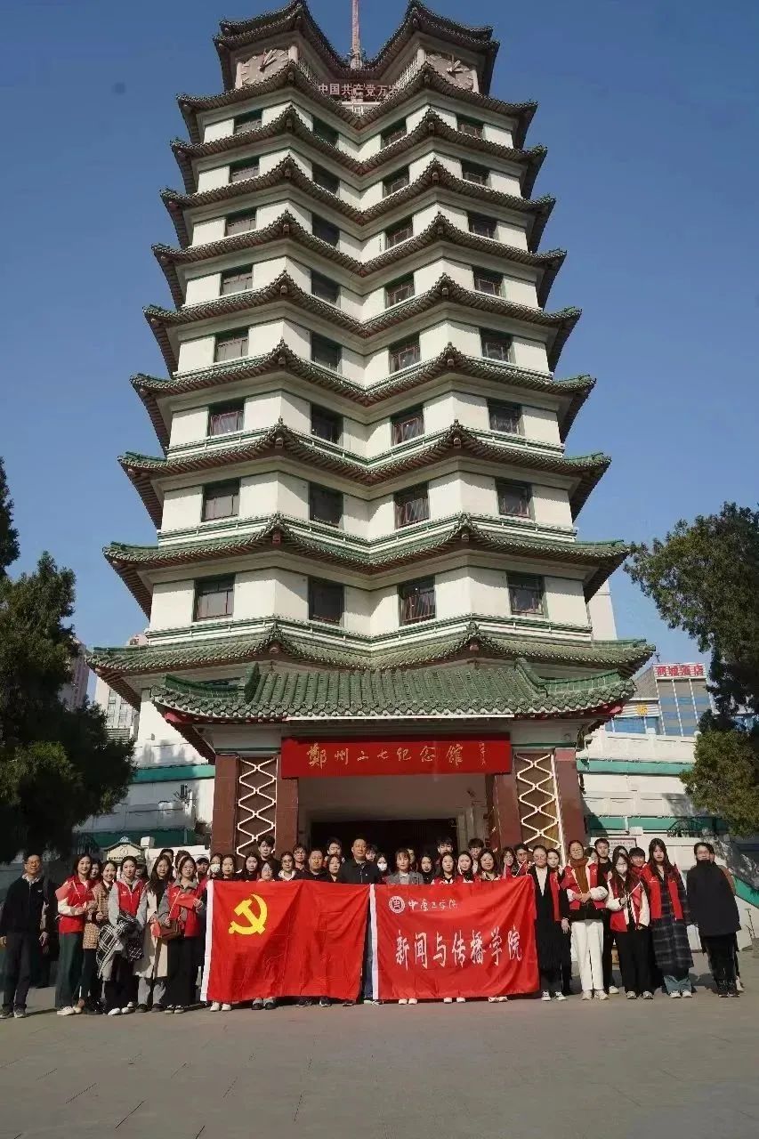 学生党员团结奋斗、拼搏进取,11月14日下午,新闻与传播学院组织学生党员、发展对象和入党积极分子代表前往郑州二七纪念塔和二七纪念堂开展党日活动,学院党委书记崔涛、副书记马肖华、副院长刘念及各学生党支部书记参加活动。