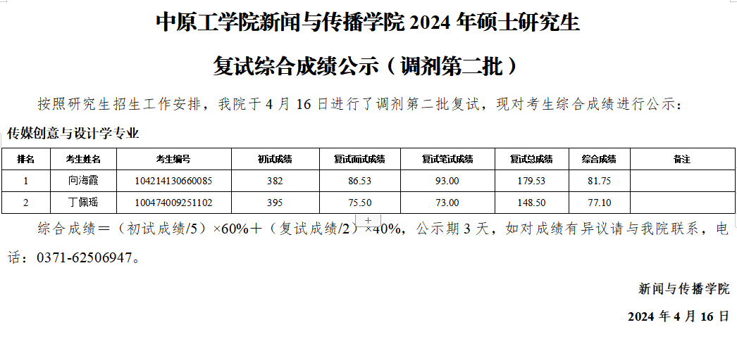 91论坛 新闻与传播学院2024年硕士研究生复试综合成绩公示(调剂第二批)