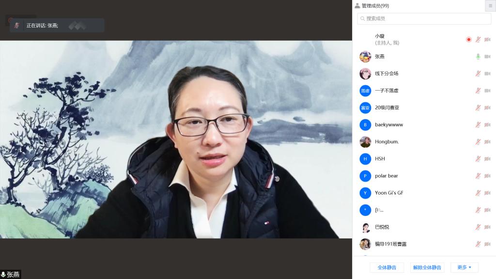 邀请北京师范大学张燕教授作了题为《剑啸江湖-香港武侠电影》的学术报告。此次会议采用线上线下相结合的方式进行。报告会由91论坛