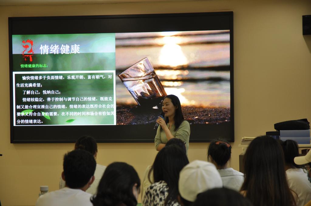 首先,陈慧就健康与心理健康、大学生心理健康的标准、大学生常见的心理困惑和异常心理、大学生如何保持健康的心理状态等几个方面与在场学生进行了交流。她以生动鲜活的案例深度解析了大学生日常生活中常见的心理健康问题,讲授了如何进行心理解压疏导、如何改变因情绪所导致的负面行为、如何在纷扰的环境中学会自我调适,并学会寻求专业心理咨询的指导。最后,陈慧鼓励同学们要注意培养和发展一些兴趣和业余爱好,学会享受生活,创造快乐,珍惜美好!