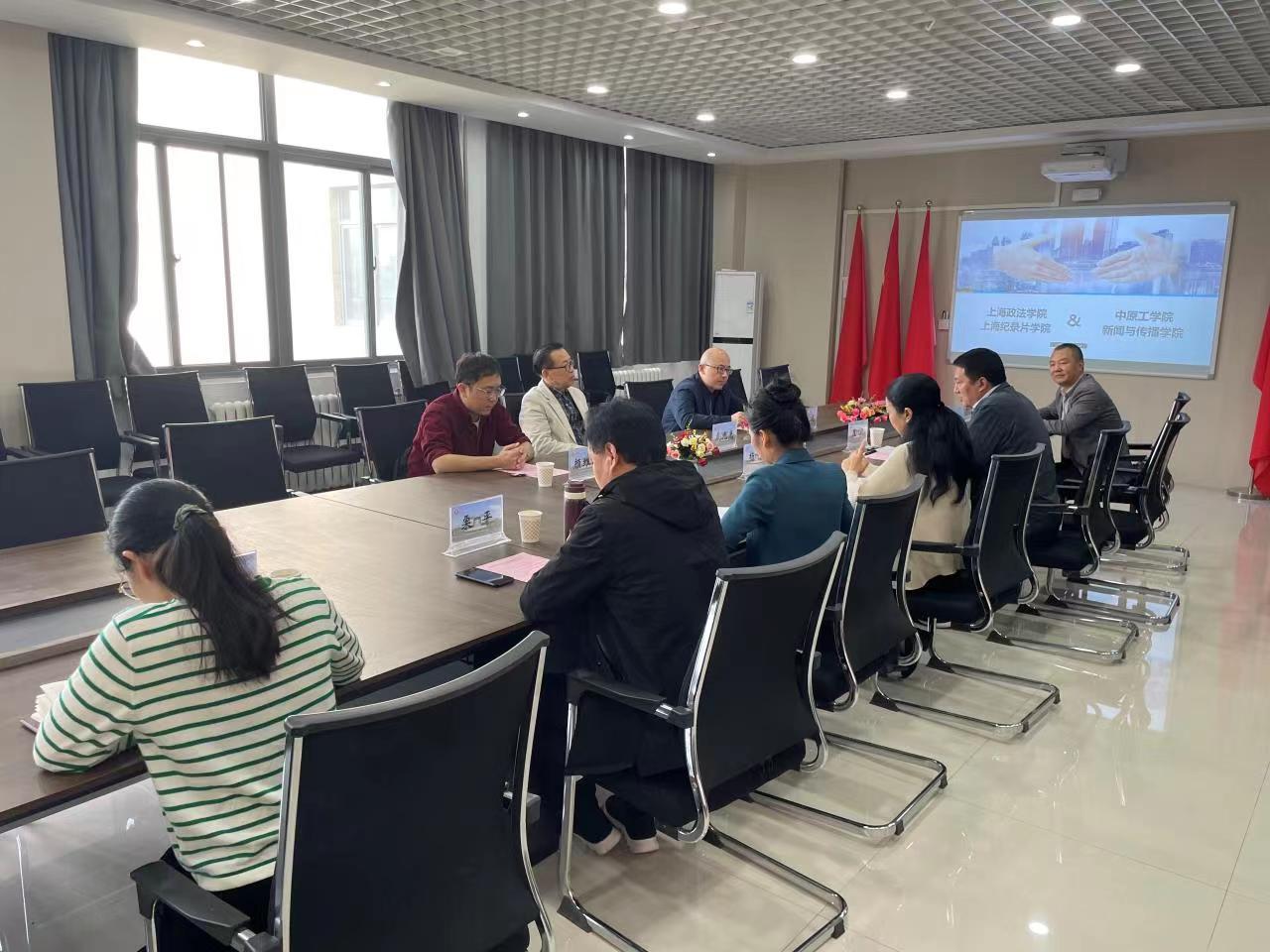 杨静院长在发言中再次表达了对戴元光理事长一行来院交流的欢迎,她强调,像戴教授这样有全国影响力的学者的来访及揽才行动,是对本院本科和研究生培养工作的激励。双方应以此为契机,加强交流与互动,扩大新闻与传播学院“协同育人共同体”建设的范围,推动跨区域院际协同,并且可以在包括黄河文化传播在内的较多项目或领域中实现可持续性的建设性合作。杨院长和戴理事长探讨了双方在共建实训基地、课程与师资共享、学生创作实践协同等方面的合作空间,并初步议定了实施路线图。