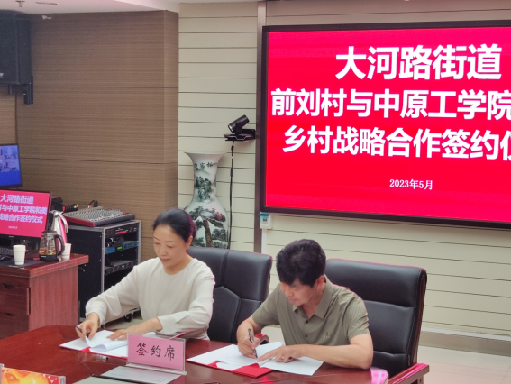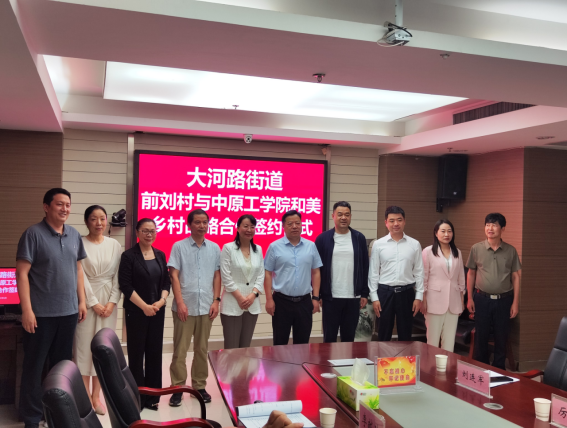 新闻与传播学院与大河路街道前刘村村民委员会战略框架合作签约仪式隆重举行。副校长海然,新闻与传播学院党委书记崔涛、院长杨静;惠济区政府副区长、党组成员陈伟森,区农业农村工作委员会主任孙广斌等领导;黄河水利出版社副社长、黄河水利文化研究首席专家岳德军;河南中方智库常务副院长李献玲等企业嘉宾以及新闻与传播学院班子成员、研究生导师出席签约仪式。签约仪式由大河路街道党工委副书记、主任何文龙主持。