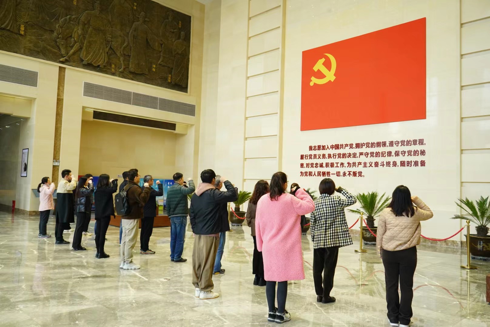 走进河南省廉政文化教育馆,鲜红的党旗和庄严的誓词首先映入眼帘,胸前的党员徽章在党旗下熠熠生辉,大家共同高举右拳,重温入党誓词。80个字的入党誓词是共产党人作出的庄重承诺,铿锵有力的宣誓再次激励大家以更加坚定的理想信念坚守初心和使命,牢记立德树人根本任务,厚植爱国情怀。