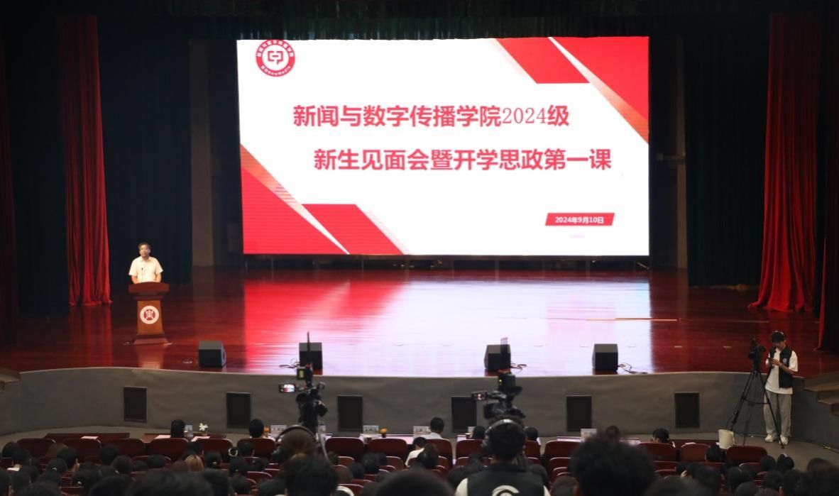 2024级新生见面会暨开学思政第一课在三号组团楼报告厅隆重举行,校党委副书记、工会主席宋晓炜,校党委宣传部部长方敬永,学院班子成员及部分教师,2024级新生参会。