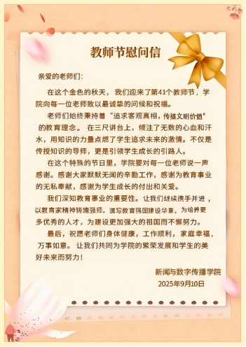 学院还通过多种方式传递节日问候与祝福。一封封饱含深情的信件,如温暖阳光照亮老师心田。同时,学院为老师定制的特殊小礼物,虽不昂贵却承载满满心意,是学院对老师的敬意与祝福,也是对教育事业的尊重与支持。