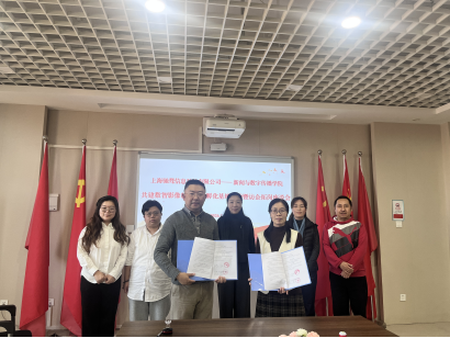 与上海驰骛信息科技有限公司在3号组团楼B904会议室举行共建数智影像制作人才孵化基地签约仪式暨访企拓岗座谈会。上海驰骛信息科技策略VP孙磊、新媒体运营顾问李斯雯,学院院长杨静、副院长蔡爱芳、刘念,副书记马肖华,网络与新媒体系主任刘思瑶出席活动。