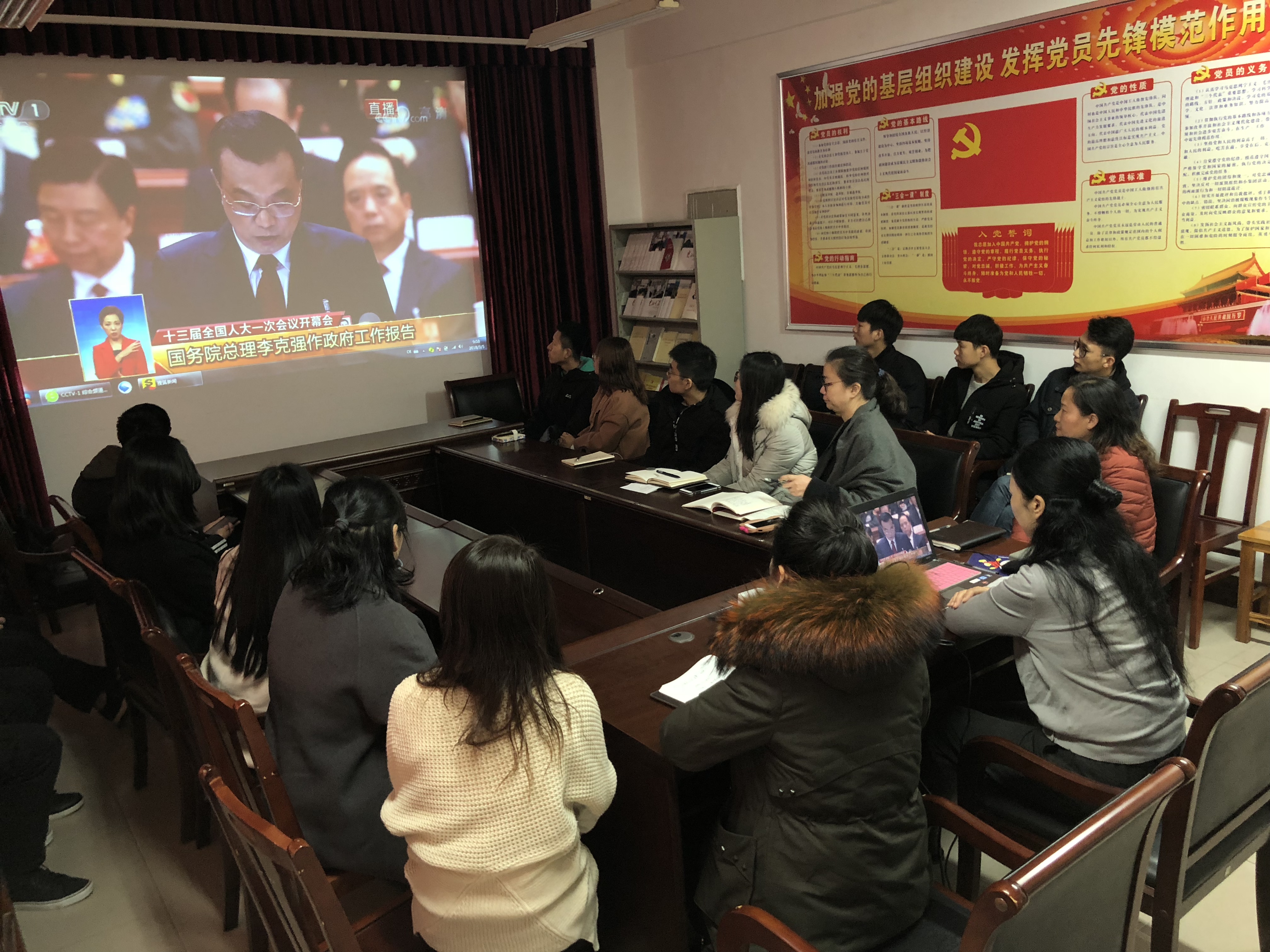 每年3月份全国两会都是我国的一件盛事,而教育从来都是其中的一项重要议题。今年两会上,李克强总理所作的《政府工作报告》、教育部部长陈宝生的答记者问涉及到多项高等教育改革的内容,91论坛 组织师生党员进行观看,大家备受鼓舞,对高等教育的未来发展充满信心。