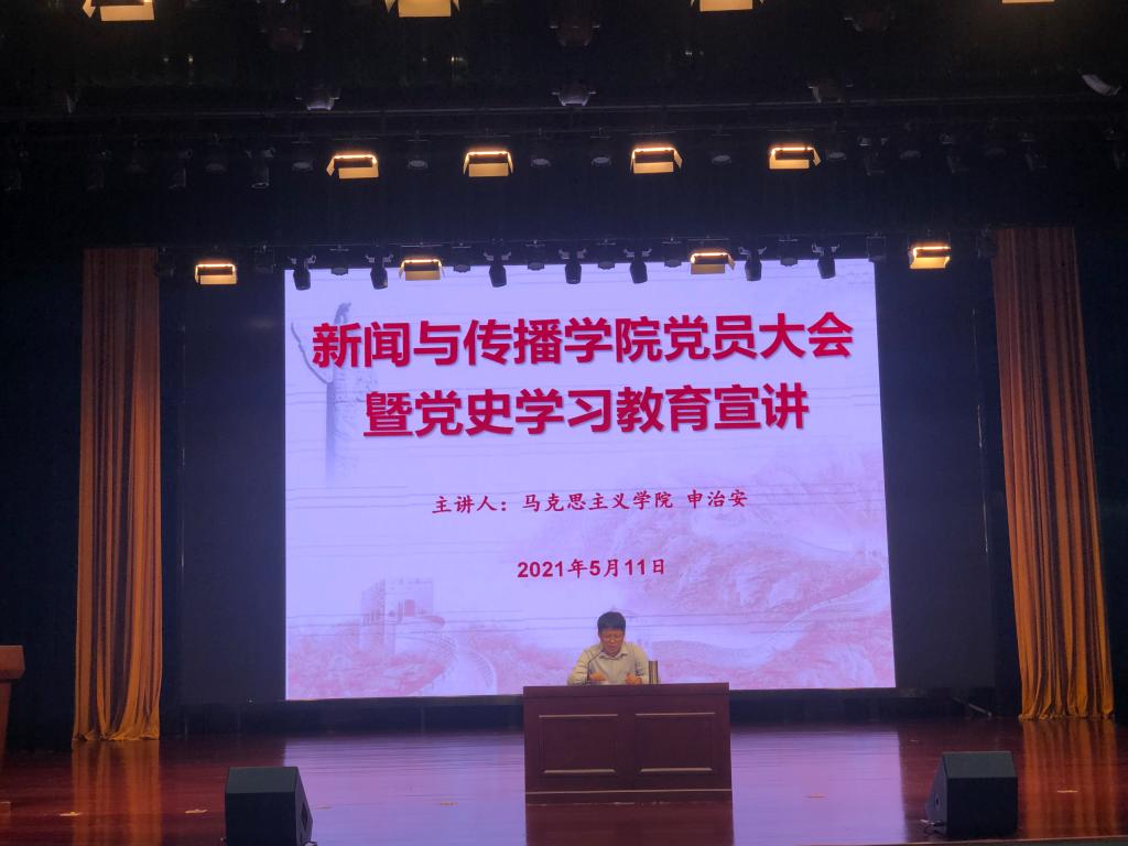 在三号组团楼学术报告厅召开党员大会暨党史学习教育宣讲会。马克思主义学院硕士研究生导师申治安博士为91论坛