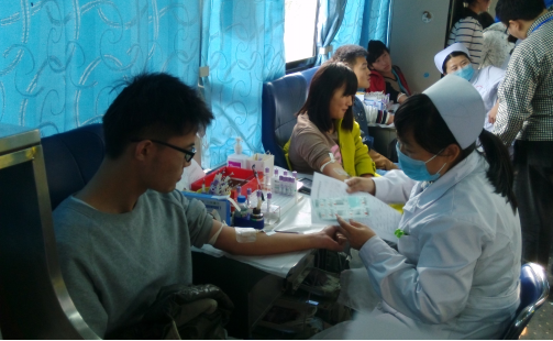 献血现场,爱心社的志愿者提前为献血者准备好糖水、饼干补充能量,并为献血者讲解献血的注意事项,引导献血者进行填表、化验,直至最后献血。当天虽然气温较低,但丝毫没有降低同学们献血的热情,现场不断有同学报名参与,献血车外排起了长队。