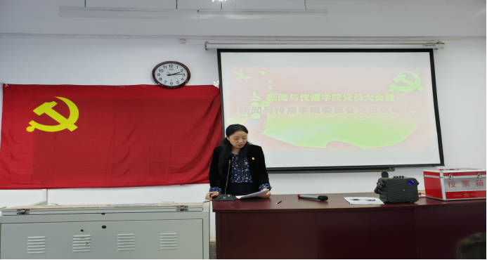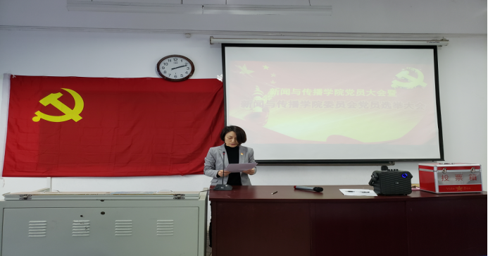新闻与传播学院委员会选举大会在二号组团楼A106教室召开,教职工支部、学生党支部及预备党员等101人参会,校党委组织部正处级组织员、党校副校长张燕杰出席会议。会议由新闻与传播学院副院长王春枝主持。