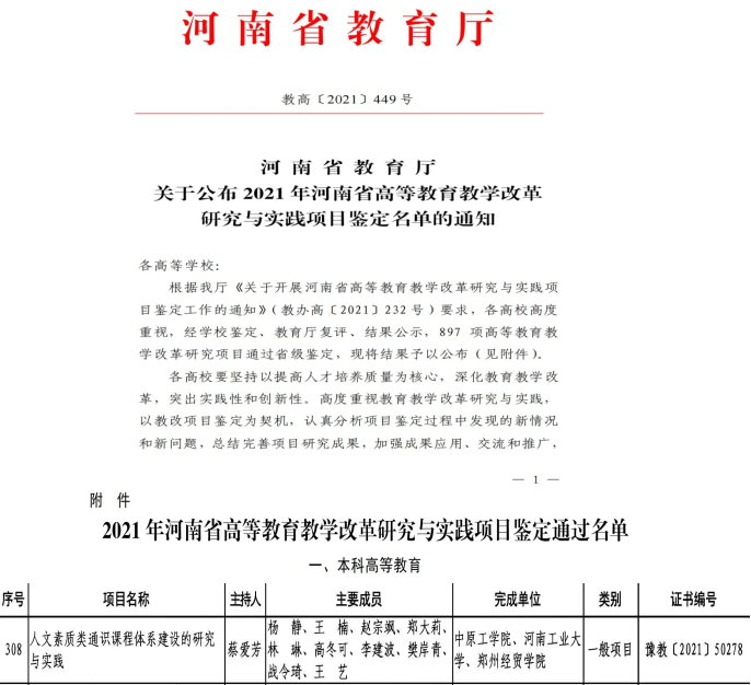 2.省级教学质量工程项目(2021年河南省高等教育教学改革研究与实践项目鉴定文件)