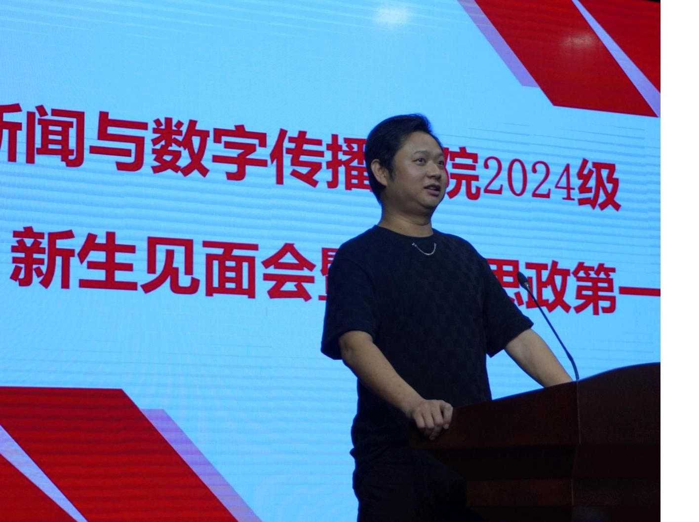 会上,学院优秀校友代表,2014届广播电视学专业毕业生,郑州报业集团中原网教育频道首席记者王煜枫向2024级新生分享了自己的传媒行业从业经历,勉励大家要锐意进取,不畏艰难,勇攀知识的高峰。