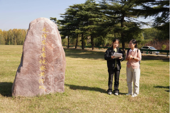 研学首站,师生们来到毛泽东视察黄河纪念碑前,“要把黄河的事情办好”几个鎏金大字在阳光下熠熠生辉,诉说着 1952 年伟人视察黄河时的嘱托与期许。蔡爱芳在纪念碑前指出,“善淤、善决、善徙”是黄河的特点,开封地处黄河“悬河”河段,这里的每一寸土地都镌刻着治黄史诗。她鼓励同学们以此次研学为契机,将镜头对准治河遗迹,让尘封的治黄故事在数字时代焕发新生。
